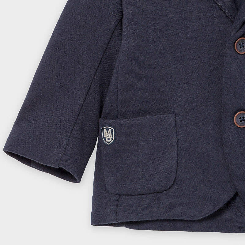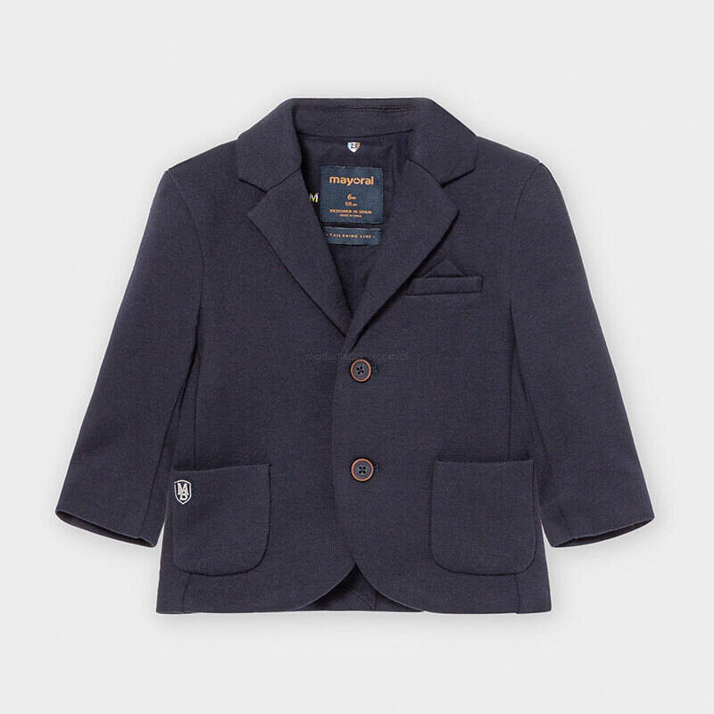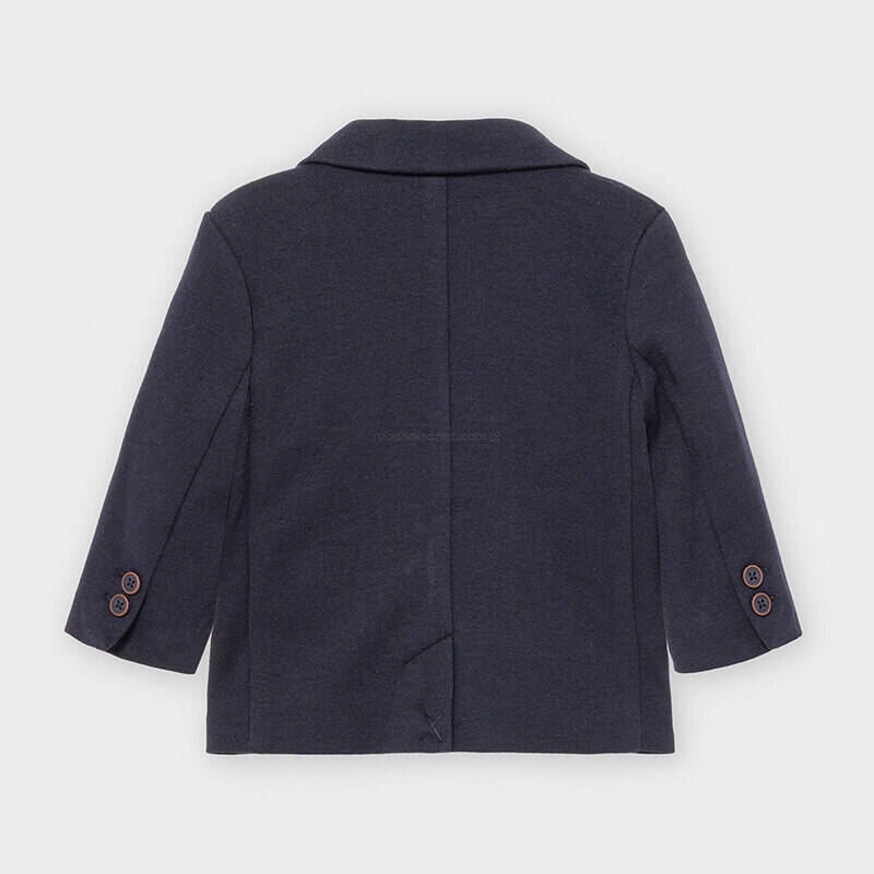 Marynarka wizytowa pochodzi z kolekcji Baby Chłopiec jesień/zima 2020/21, dostarczonej przez firmę Mayoral. Marynarka wykonana jest z dzianinowej bawełny. Zapinana jest na guziczki. Posiada naszywkę na kieszonce, guziki przy mankietach oraz podszewkę. Marynarka wizytowa dla Baby Chłopca idealnie sprawdzi się podczas uroczystych okazji.