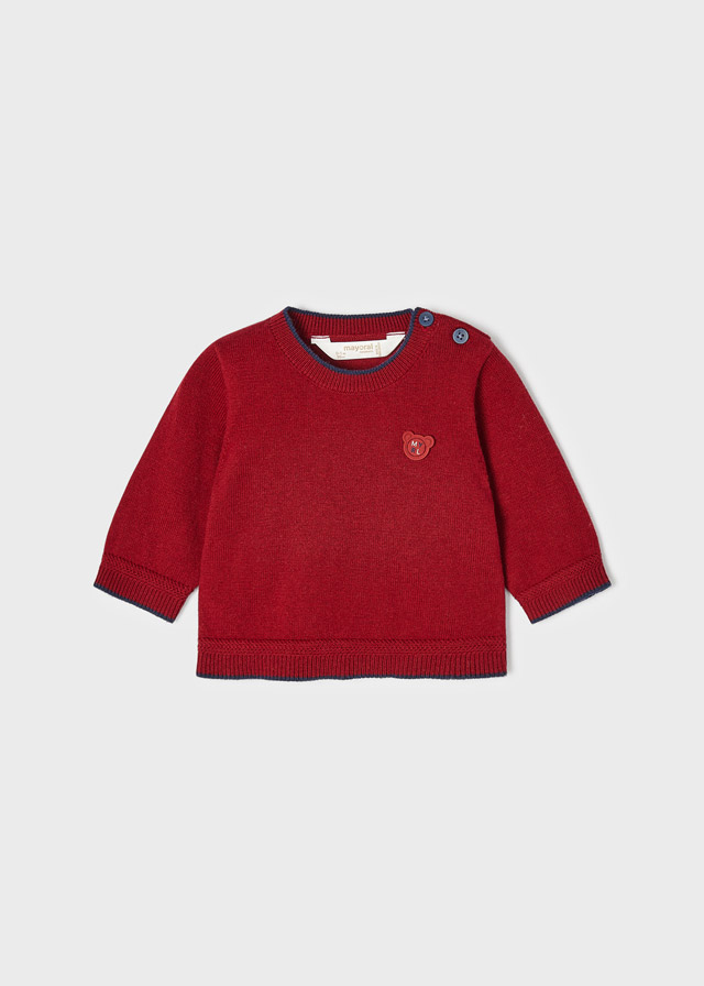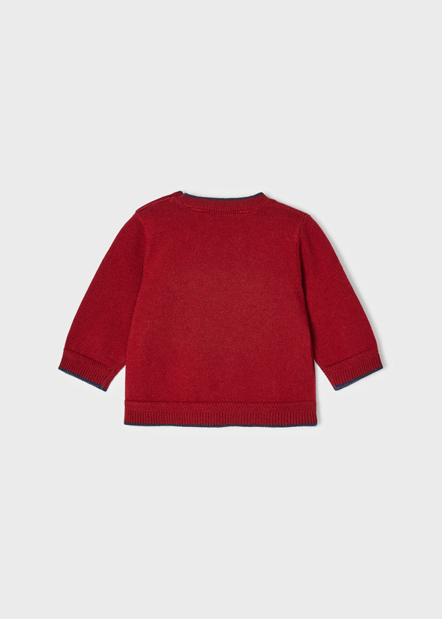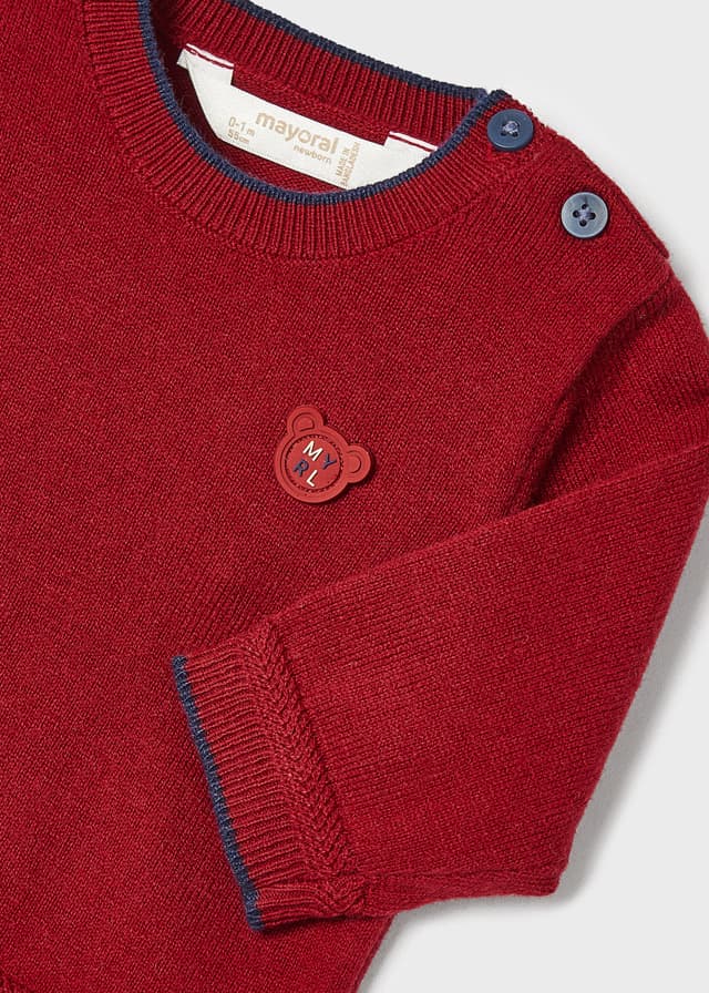 Sweter pochodzi z kolekcji Newborn Chłopiec jesień/zima 2022/23, dostarczonej przez firmę Mayoral. Sweterek ma okrągły dekolt, zapinany jest na guziczki i wykonany został z przyjemnej dla ciała bawełnianej dzianiny. Sweter trykotowy dla chłopca z naszywką idealnie nadaje się do codziennych i wyjątkowych stylizacji.