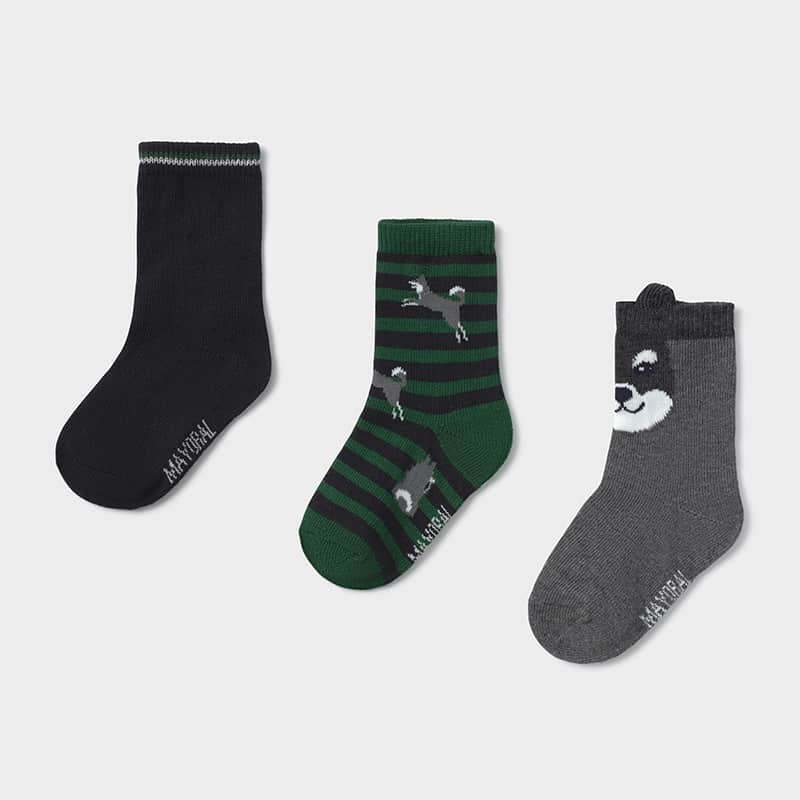 Zestaw skarpetek pochodzi z kolekcji Baby Chłopiec jesień/zima 2020/21, dostarczonej przez firmę Mayoral. Praktyczny zestaw trzech par skarpetek za kostkę dla chłopca. Delikatna i elastyczna bawełna ozdobiona grafiką. Dla idealnego dopełnienia stylizacji.